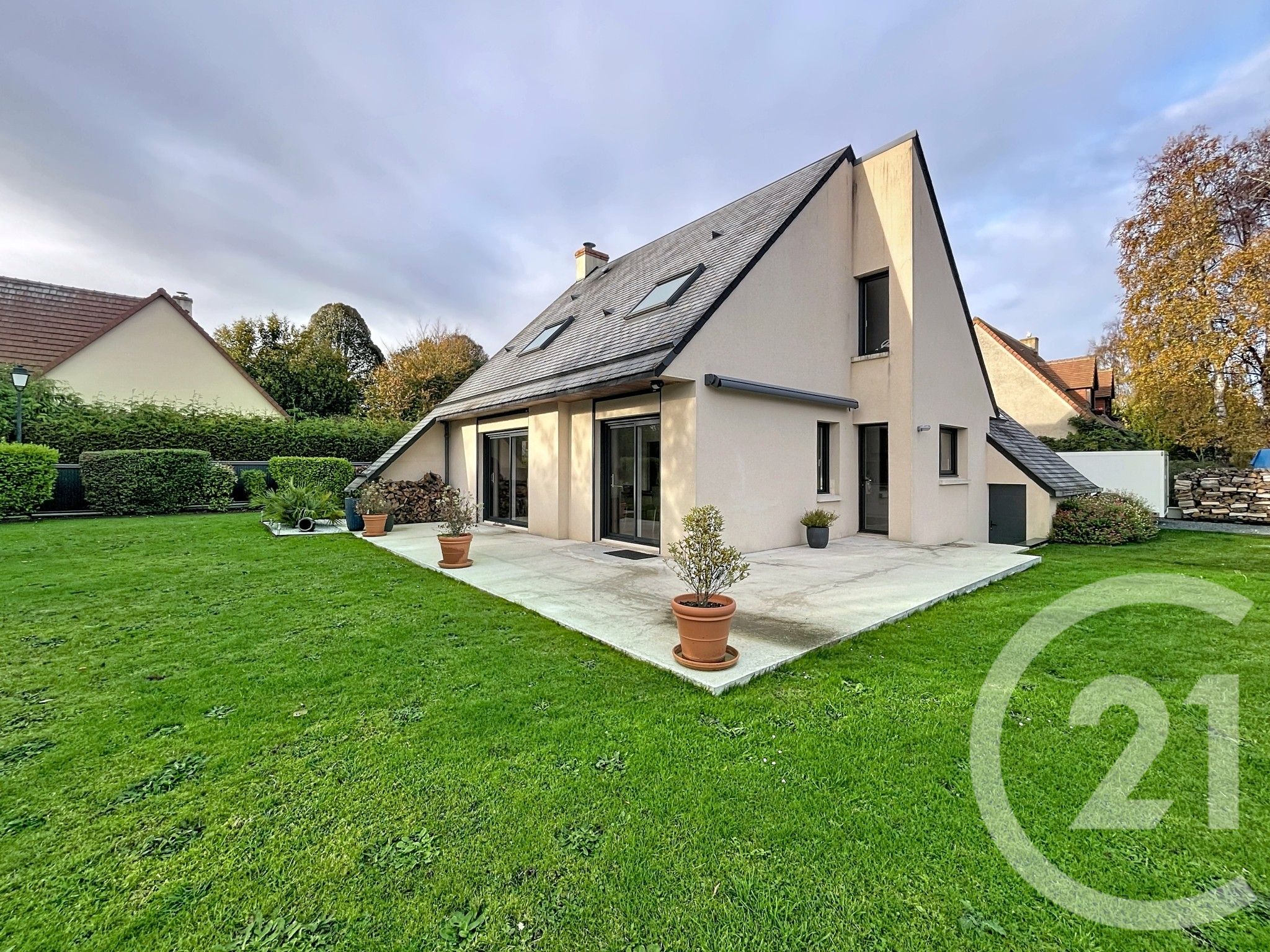 Vous pourrez profitez d'un jardin paysager et arboré de 807m² environ avec une terrasse exposé SUD.